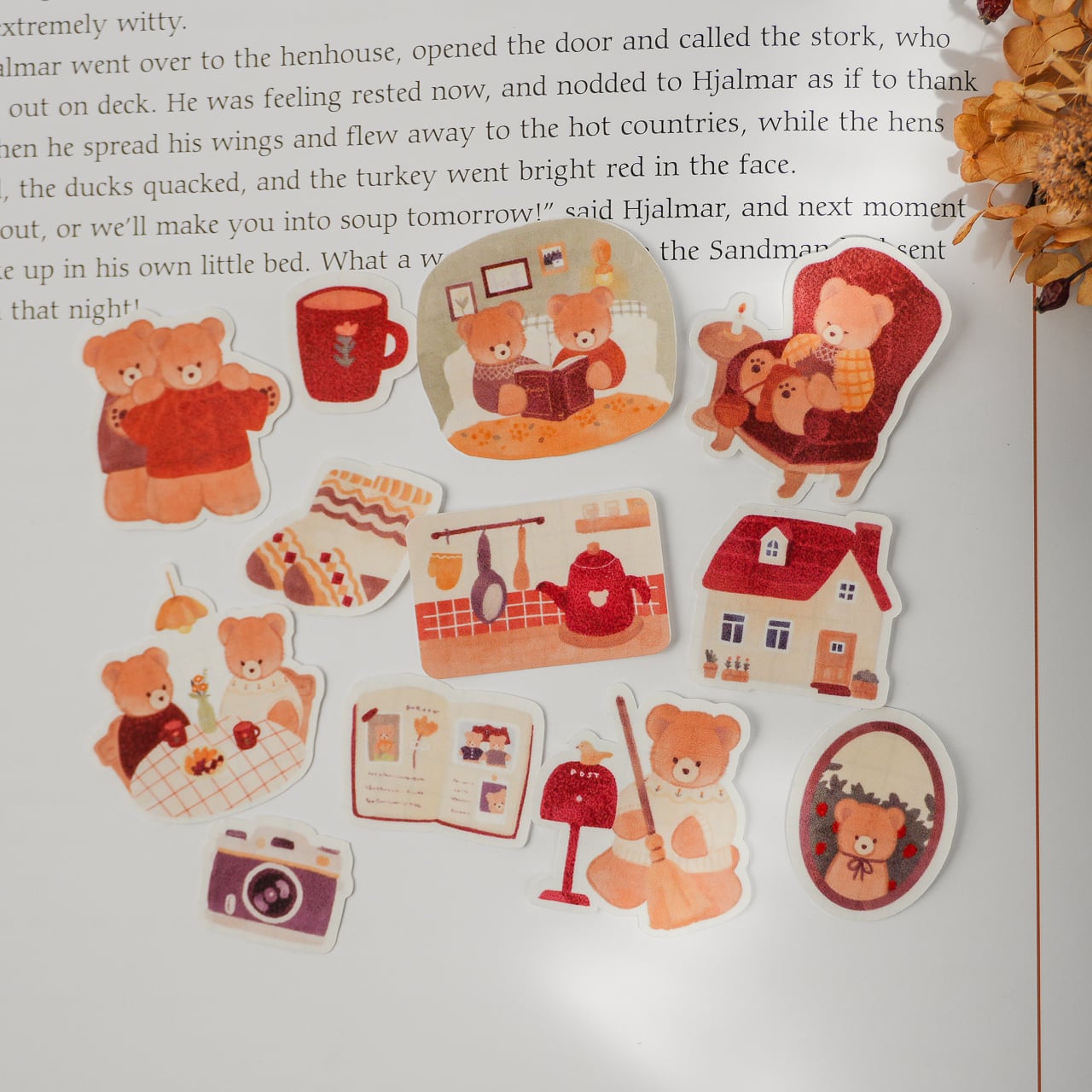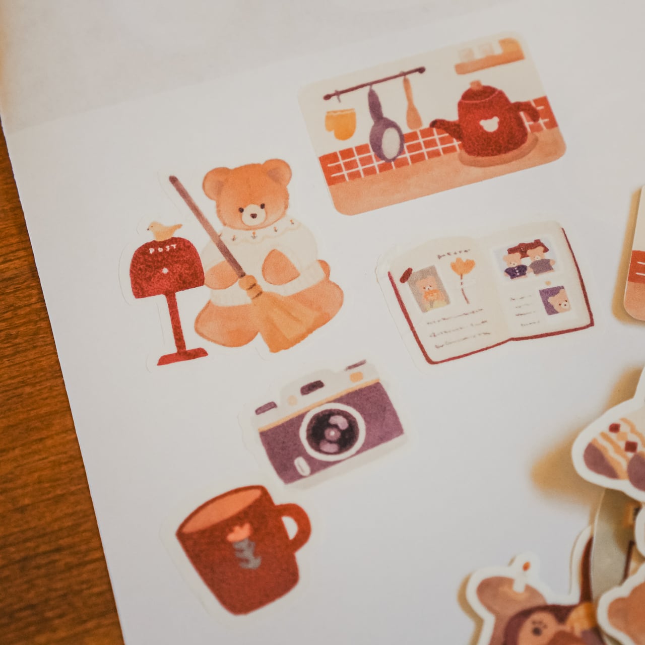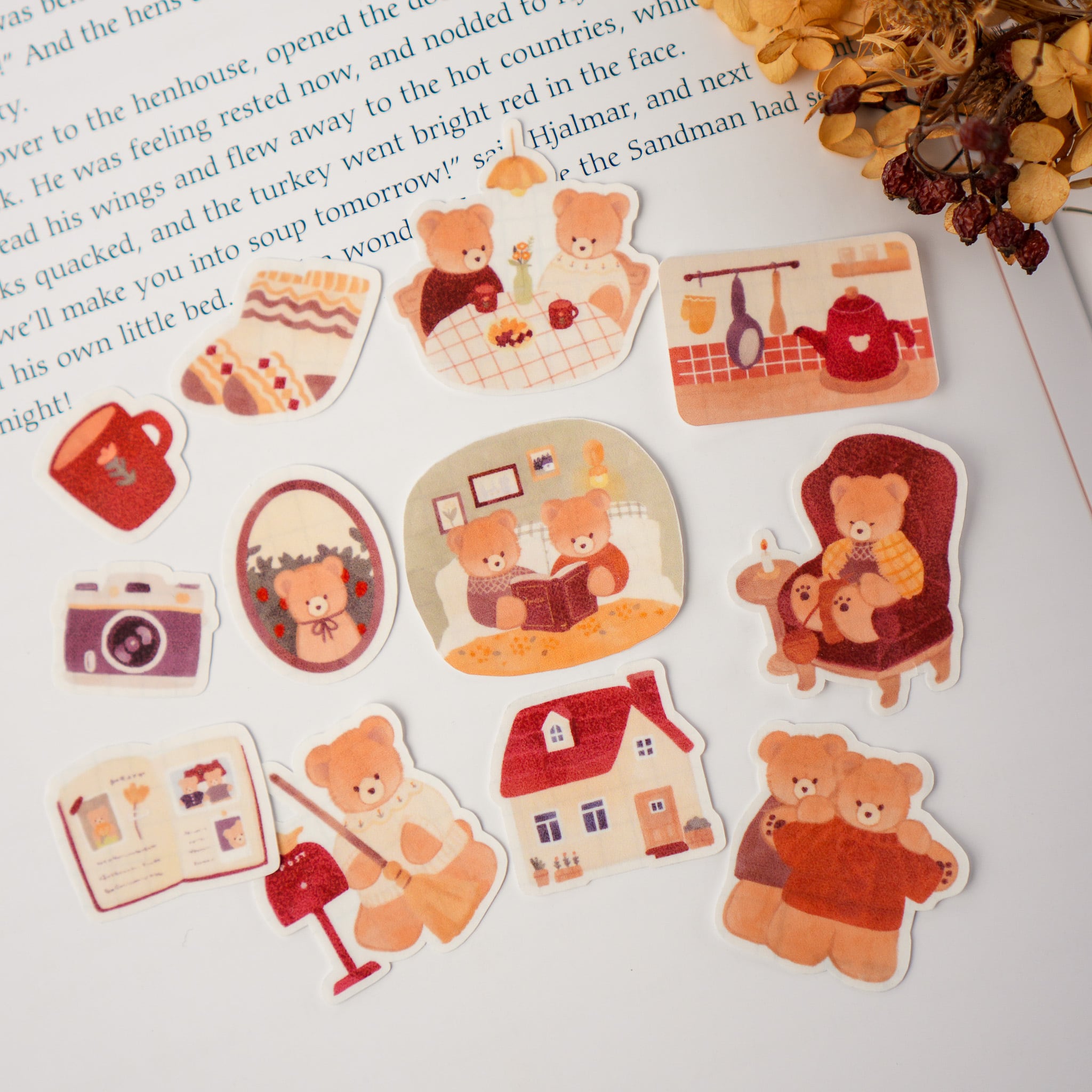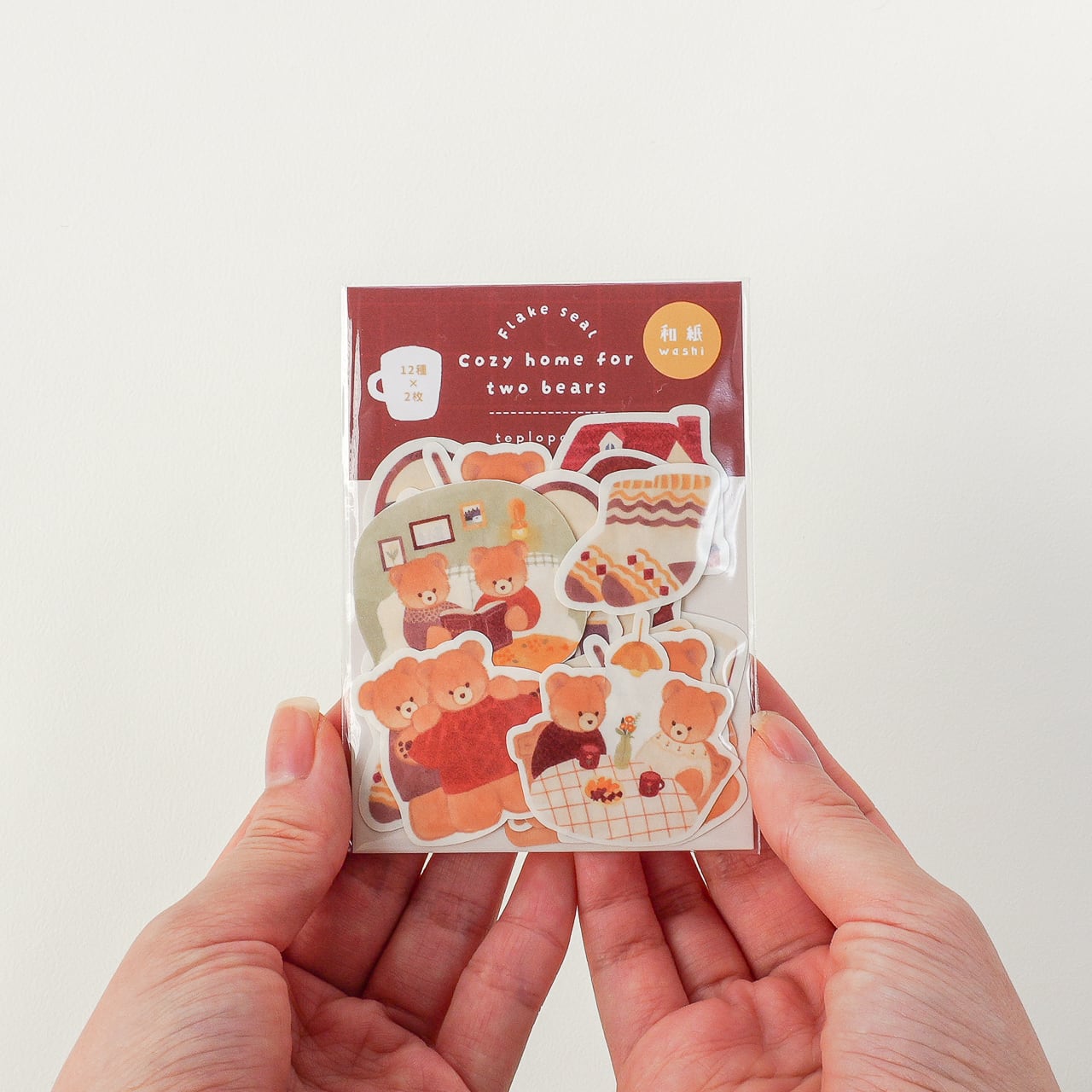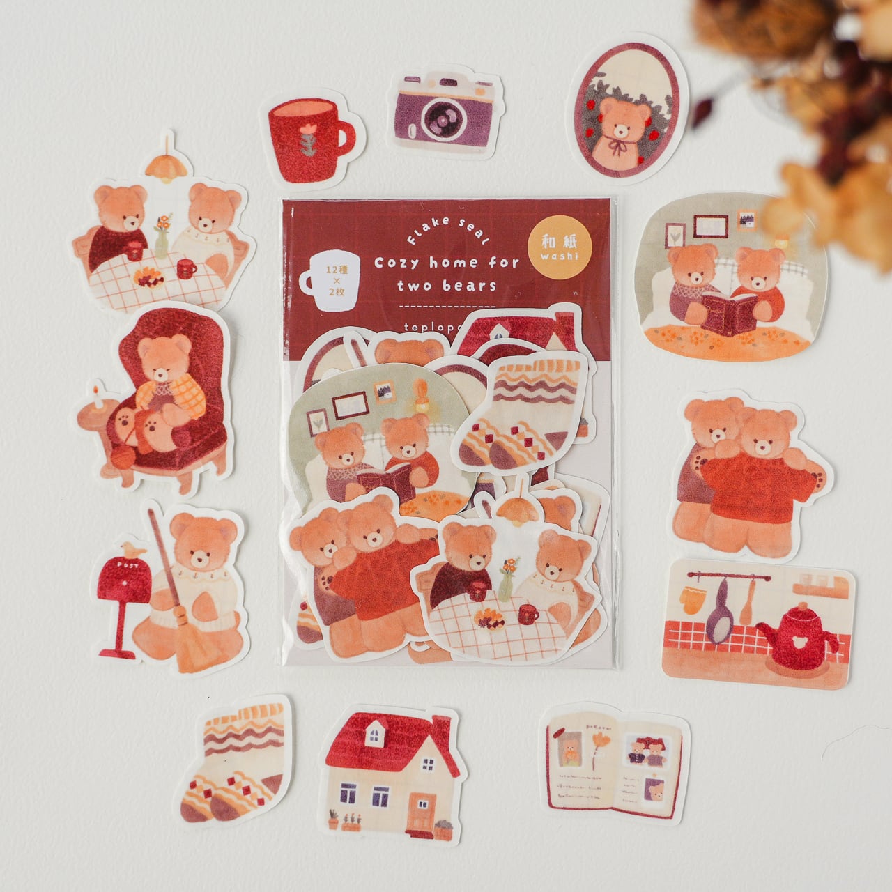 くまとふたりのおうちマスキングフレークシール【貼ってはがせる】